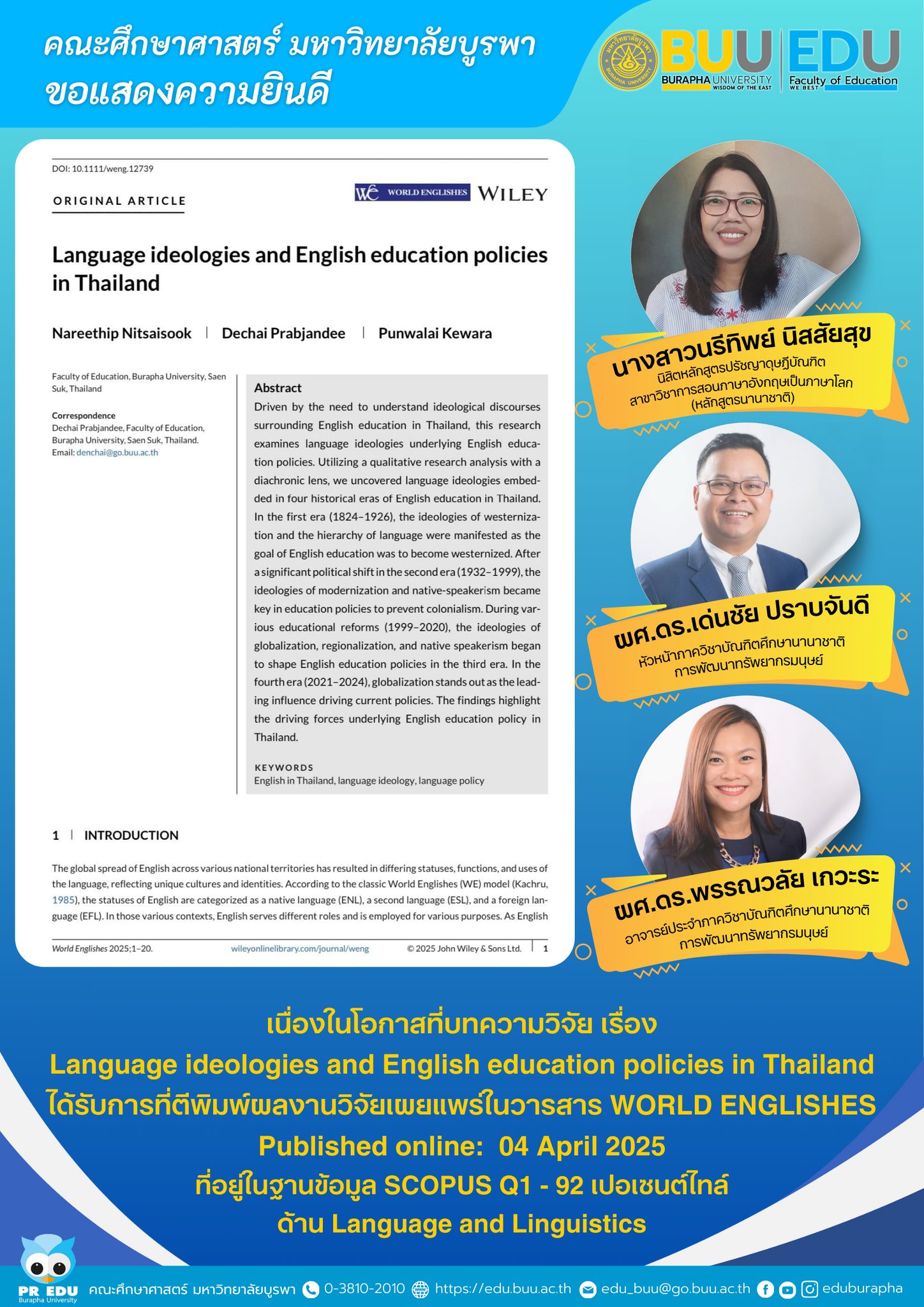 เนื่องในโอกาสที่บทความวิจัย เรื่อง Language Ideologies and English Education Policies in Thailand